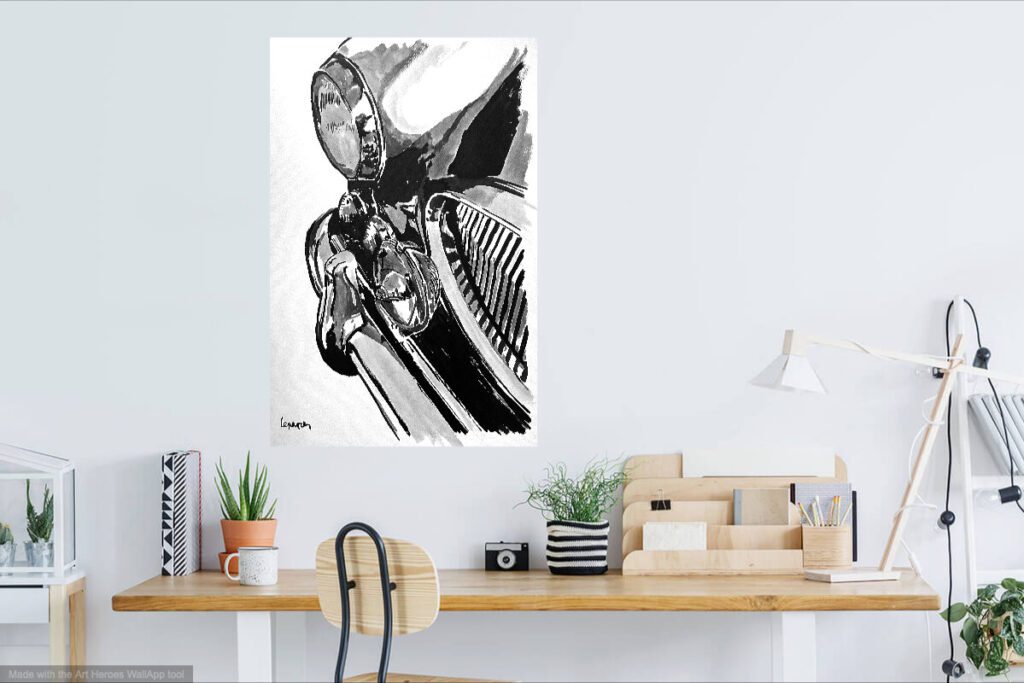 Illustration Austin Healey 3000 – lavis encre de Chine tableau 50 x 65 cm