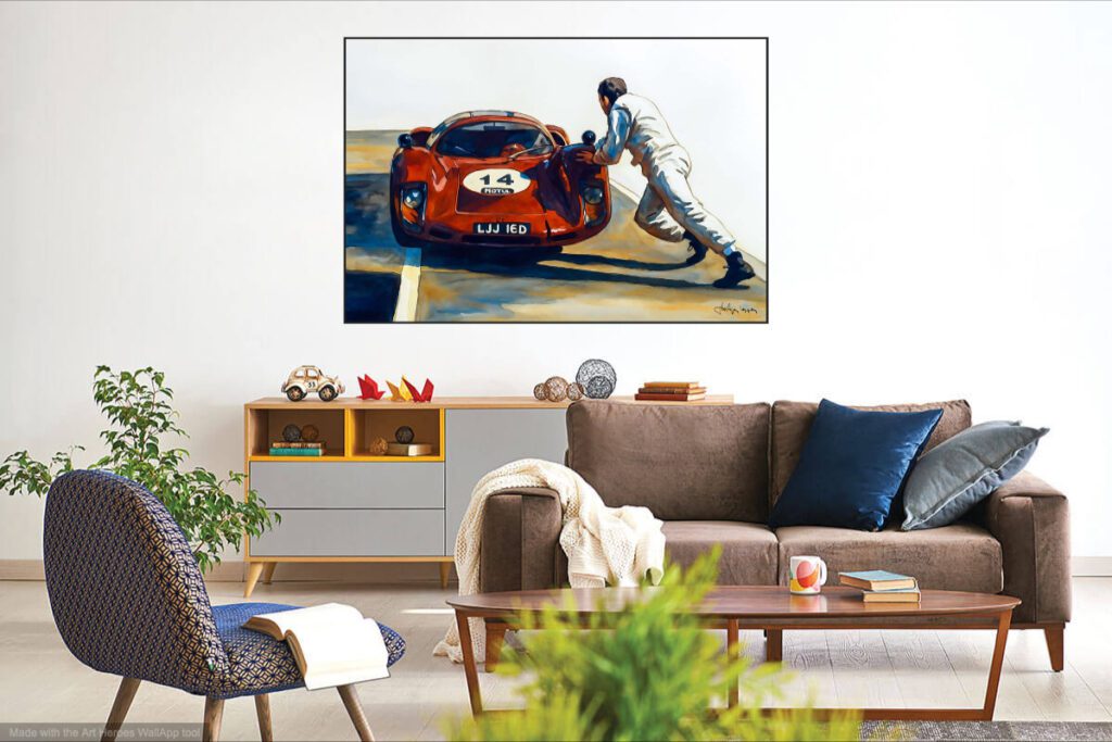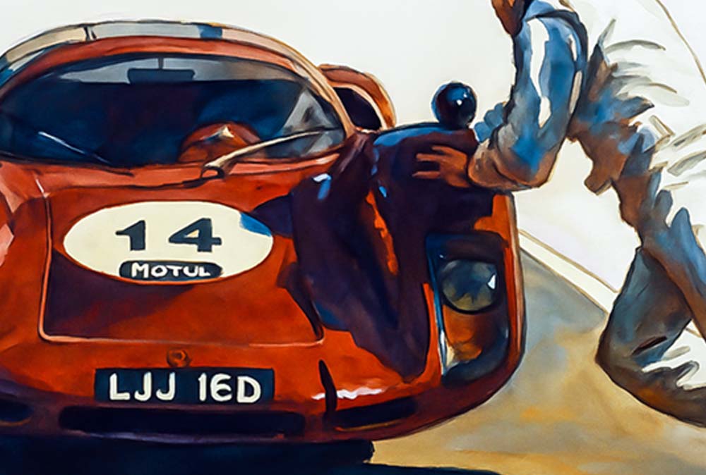 Illustration Porsche Carrera 6 – mise en couleur d’un lavis d’encre de chine art print tableau 50 x 65 cm
