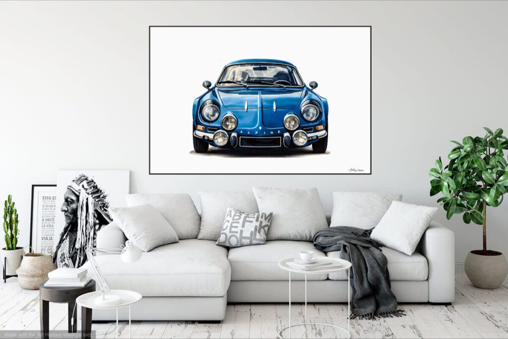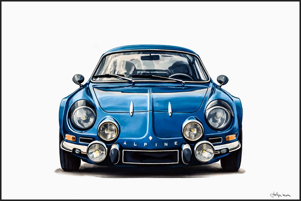 Alpine A110 rallye neige illustration mixte dessin/palette graphique 70 x 120 cm