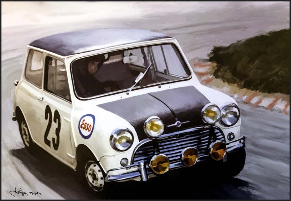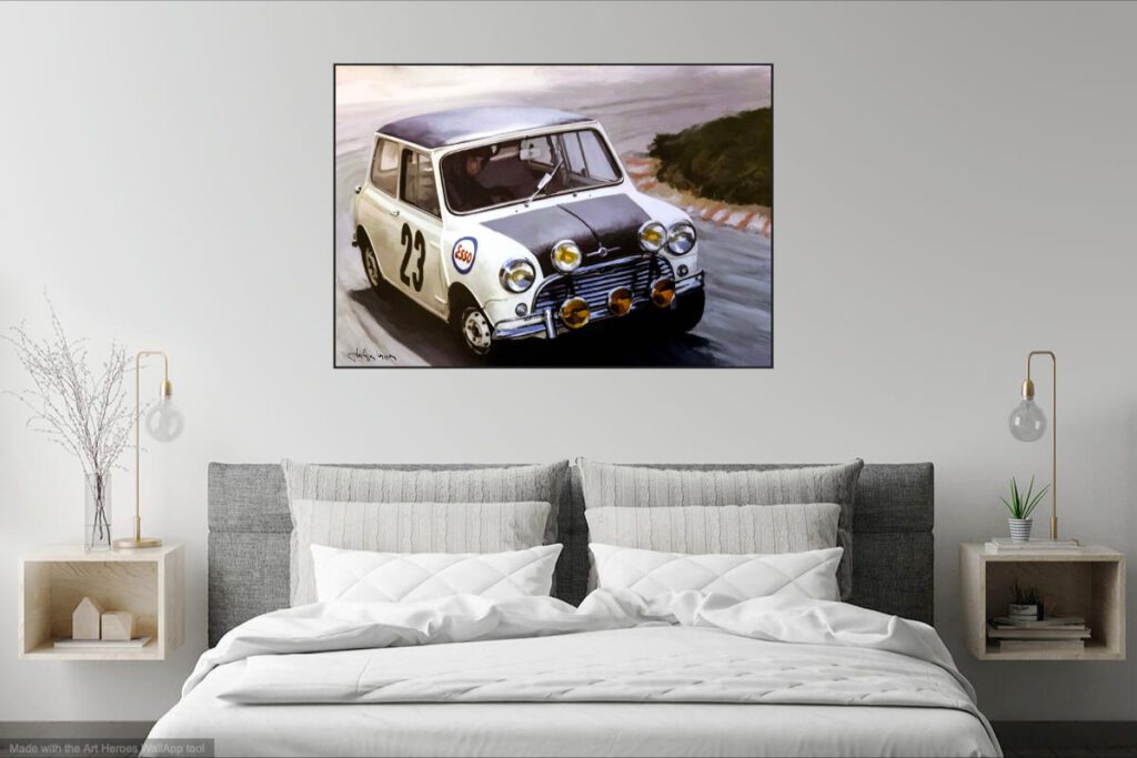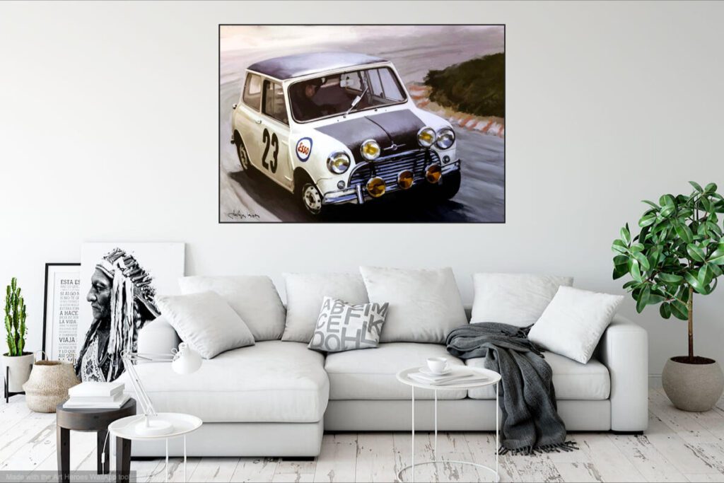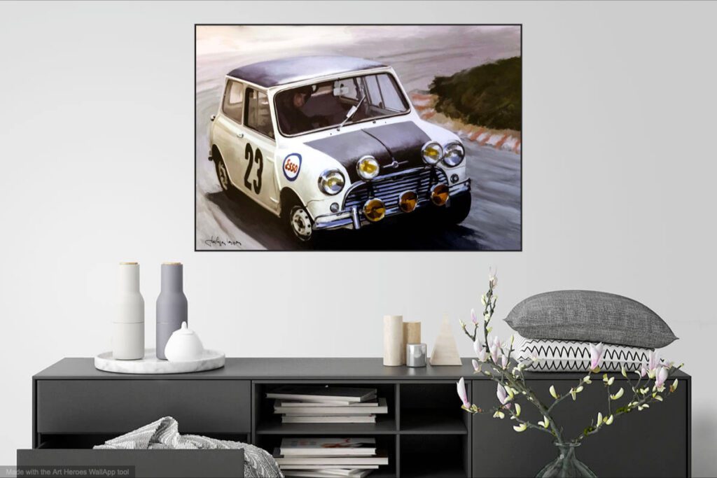 Austin Cooper S illustration mixte dessin/palette graphique 70 x 100 cm