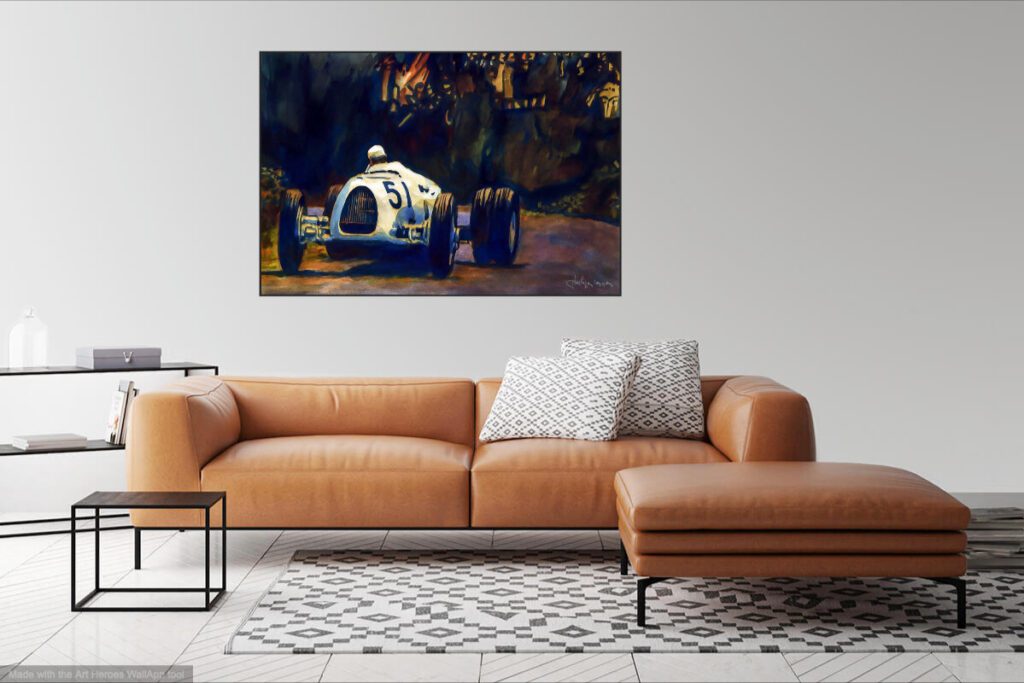 Illustration Auto Union type a – mise en couleur d’un lavis d’encre de chine art print tableau 50 x 65 cm