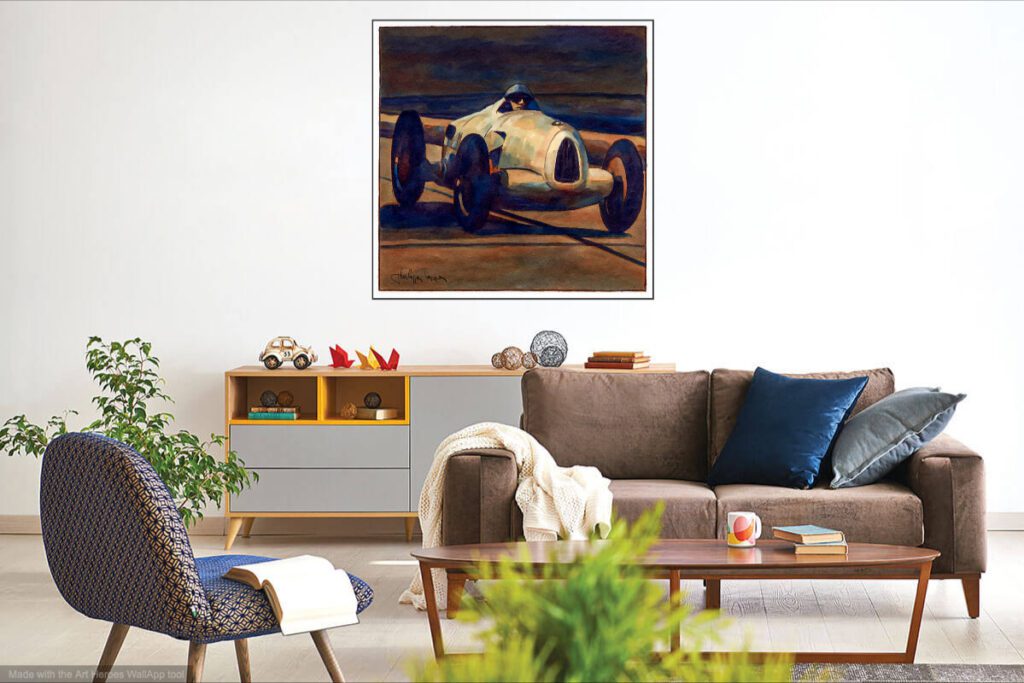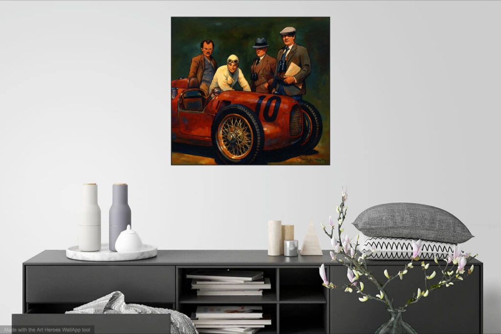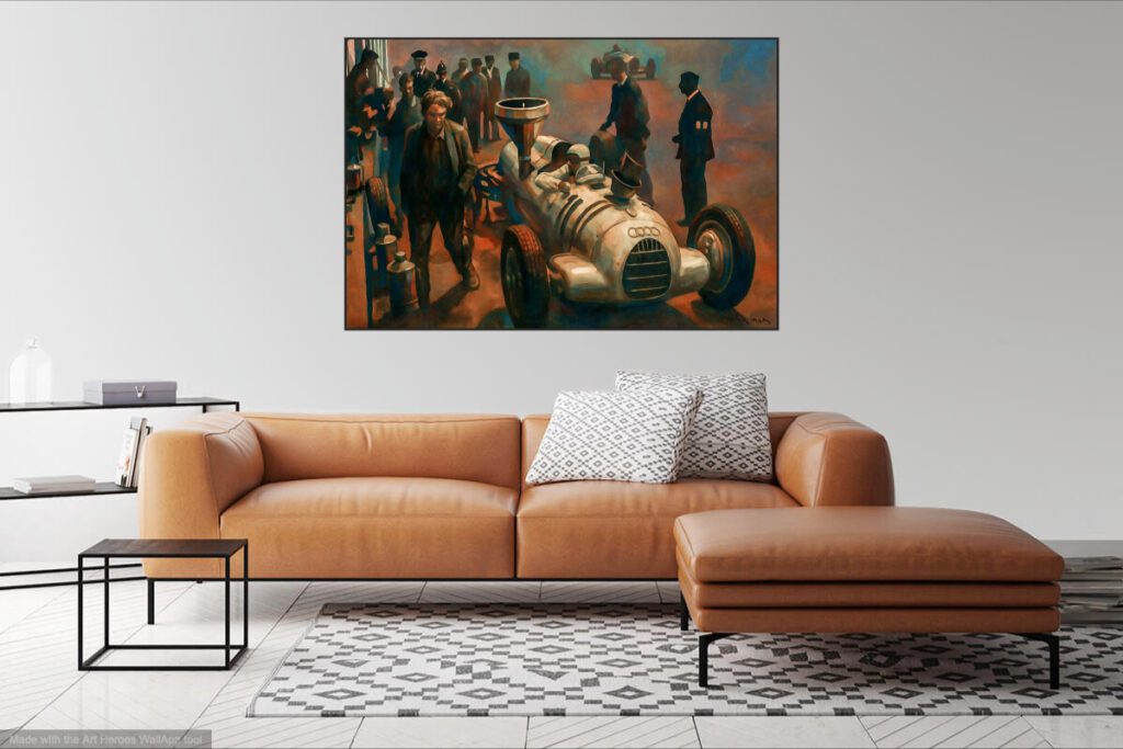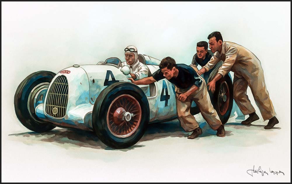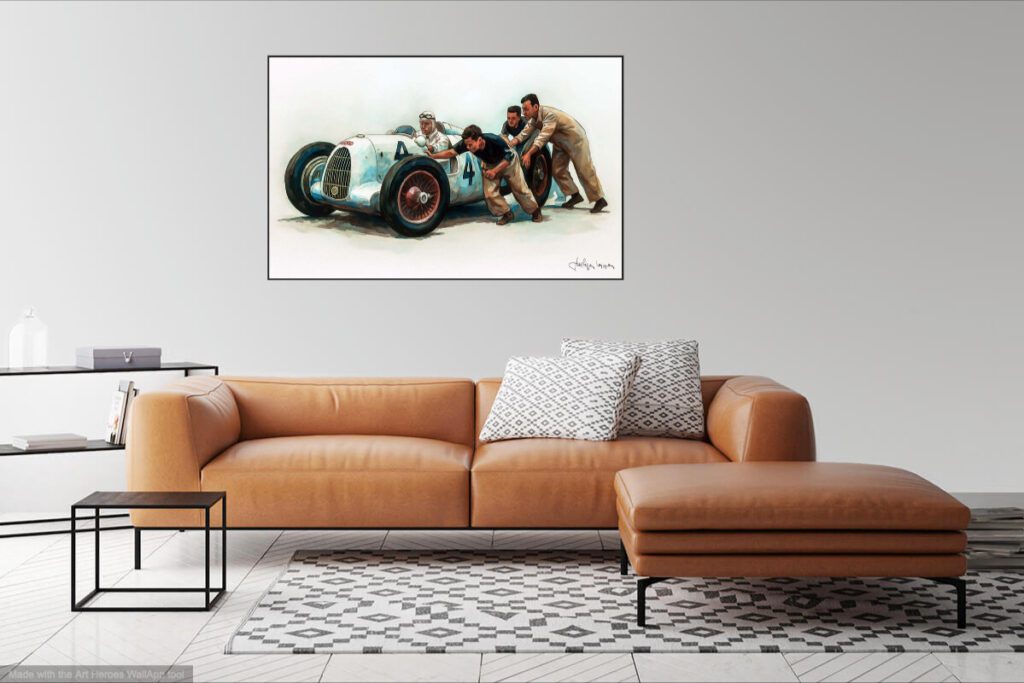 Illustration Auto Union type C – mise en couleur d’un lavis d’encre de chine art print tableau 50 x 65 cm