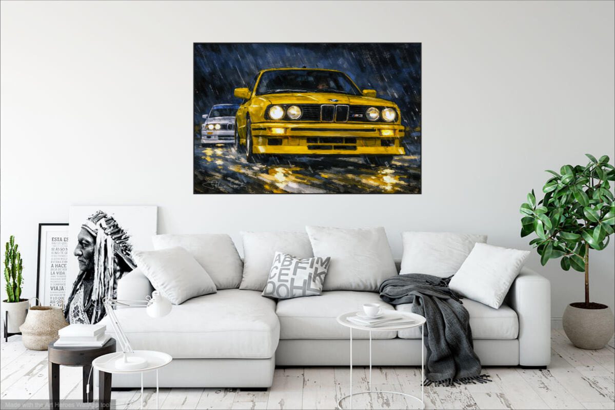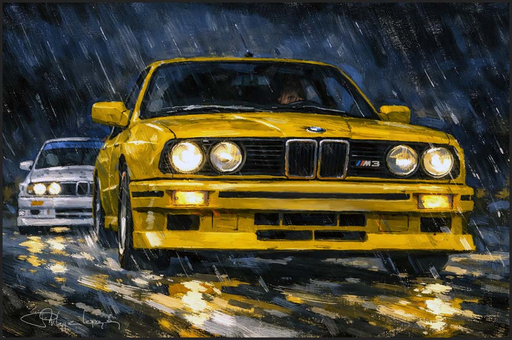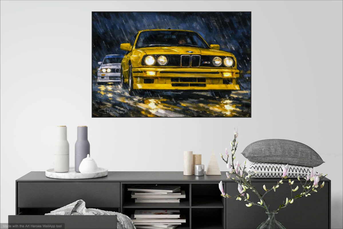 BMW M3 duel sous la pluie – tableau art print