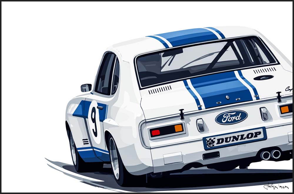 Ford Escort Mark 1 illustration mixte dessin/palette graphique 70 x 95 cm Mise en couleur et transformation artistique par Philippe Lepape Pour tout renseignement me contacter au 06 78 16 68 53 (33 6 78 16 68 53) ou la rubrique “contact“