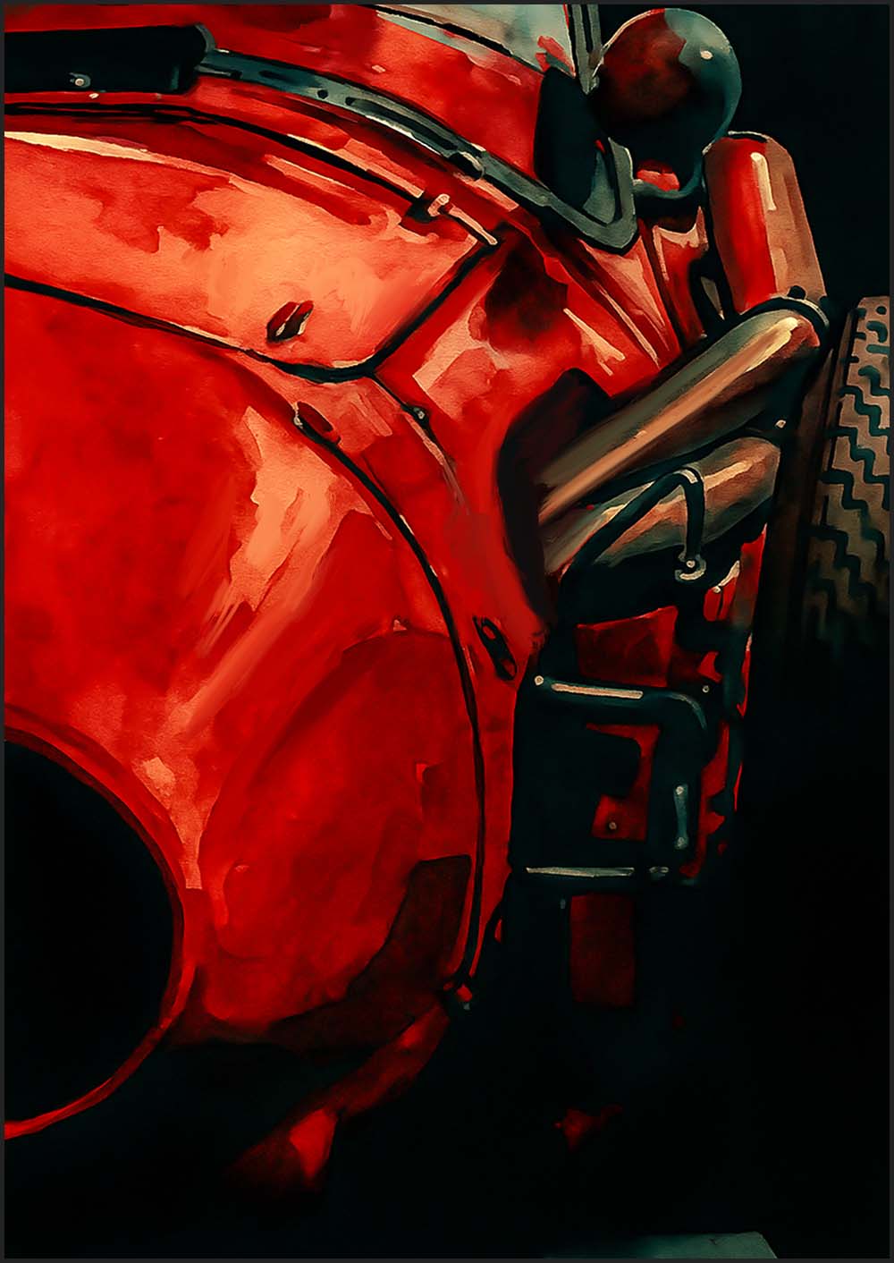 Monoplace rouge années 50 Illustration mixte lavis encre de chine/palette graphique 50 x 65 cm Renseignements A partir de mes lavis. Mise en couleur et transformation artistique par Philippe Lepape. Pour tout renseignement me contacter au 06 78 16 68 53 (33 6 78 16 68 53) ou la rubrique “contact“