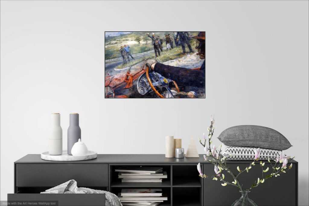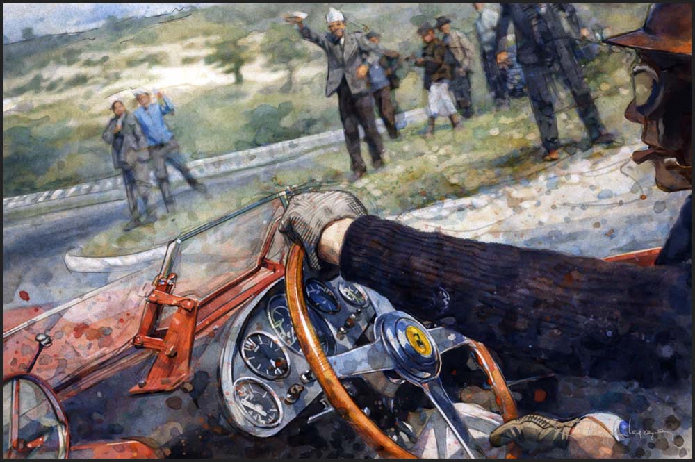 Collins et Klemantaski avec Ferrari au Mille Miglia – aquarelle tableau art print