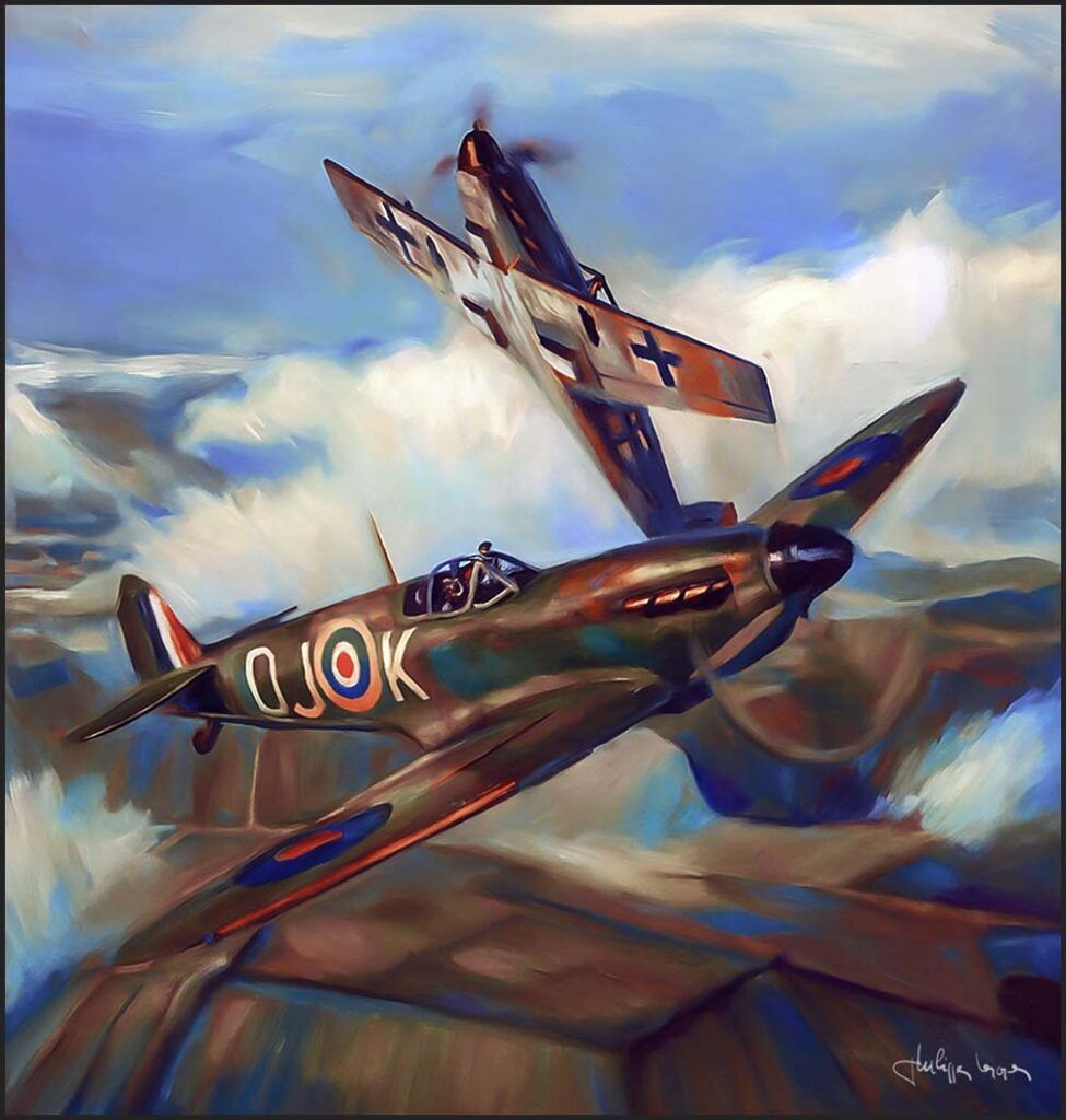 Dogfight Spitfire et M109 – illustration art print