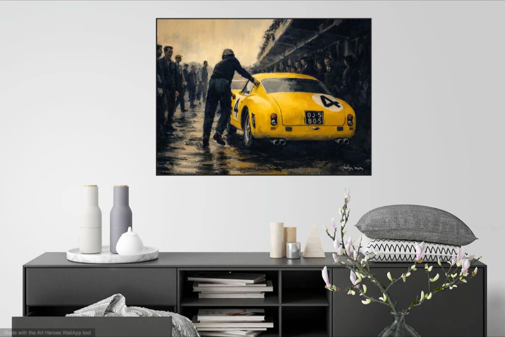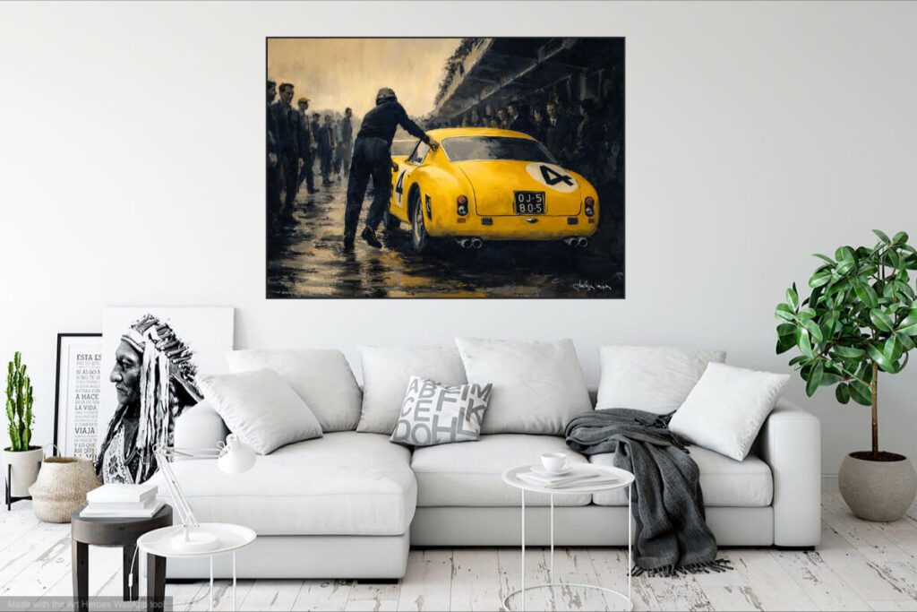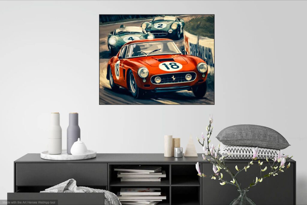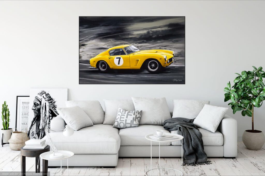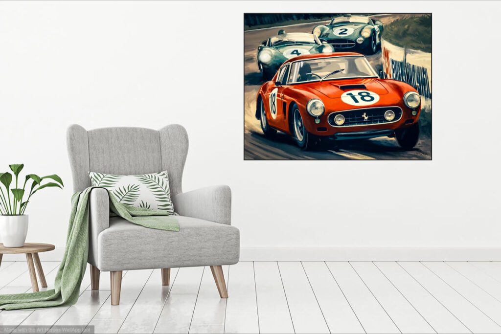 Ferrari 250 Berlinetta SWB sur la piste série d’illustrations mixtes dessin/palette graphique 70 x 100 cm