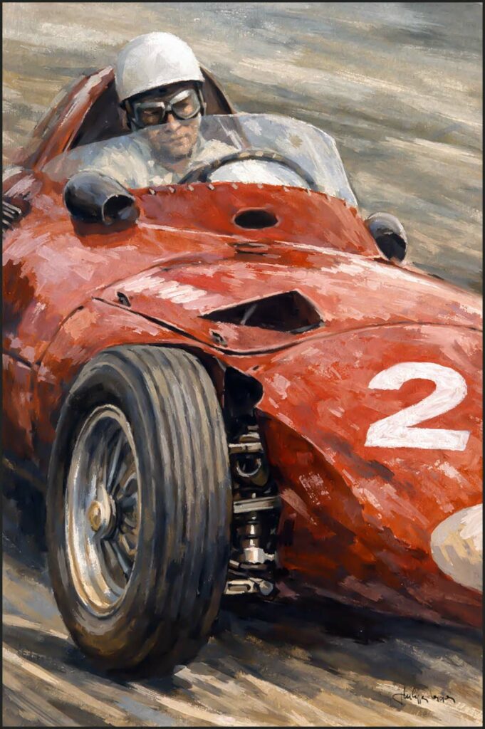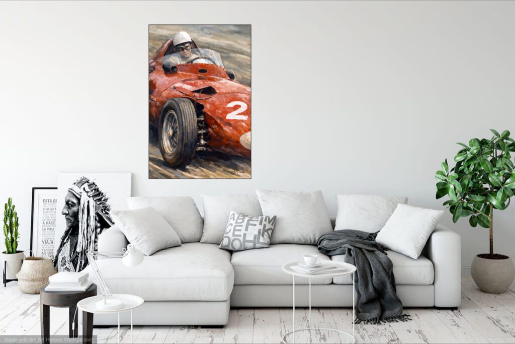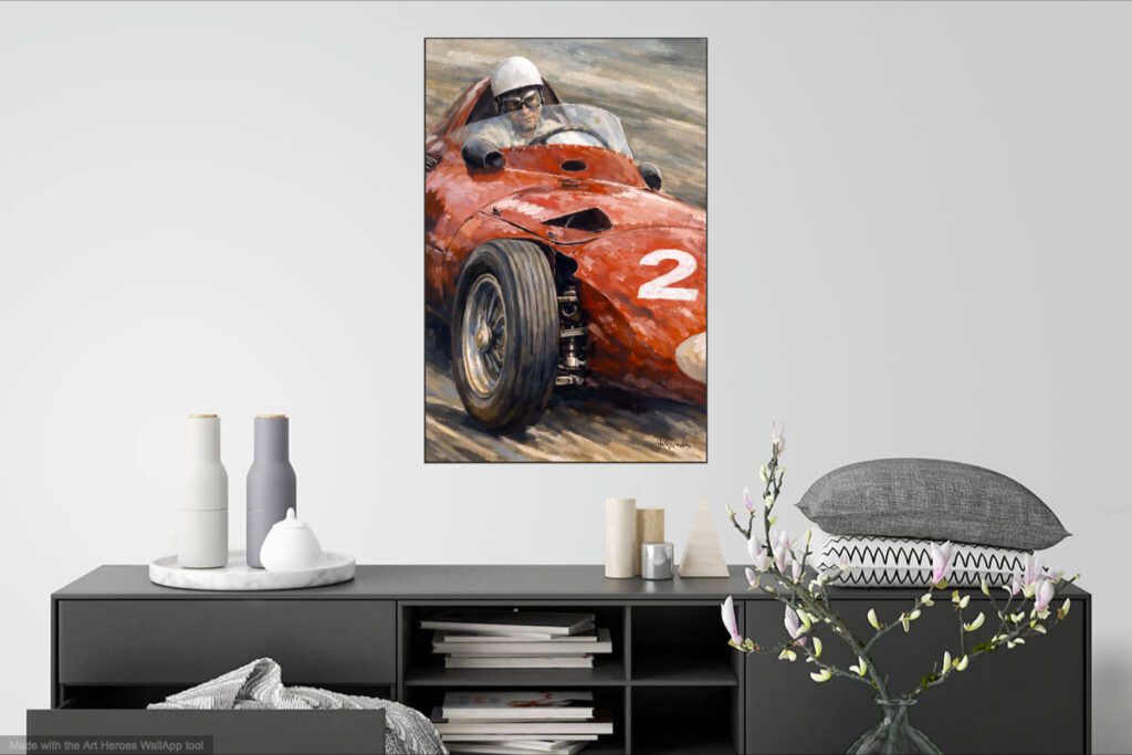 Ferrari et pilote sur la piste dans les années 50 – tableau art print