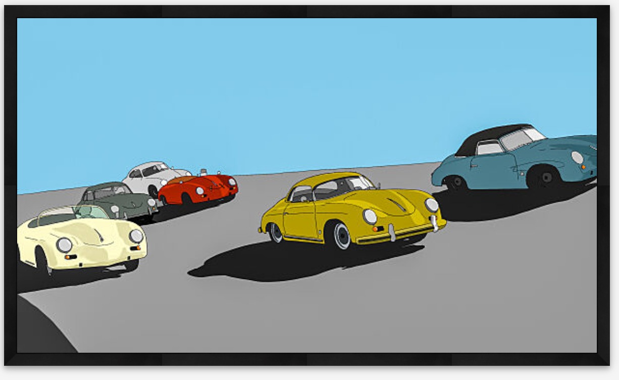 Mes illustrations sont disponibles en impressions de haute qualité sur toile, papier, dibond, altuglass, ainsi que sous forme de papier peint panoramique, le tout dans le format de votre choix. Vous pouvez ainsi embellir votre espace avec des illustrations qui célèbrent la beauté et l’héritage de ces voitures légendaires