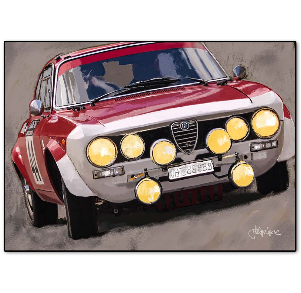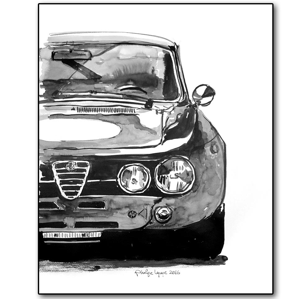 tableau Alfa Romeo – peinture voiture Alfa Romeo – art automobile italien – illustration voiture de collection – galerie art mécanique – lavis Alfa Romeo – digigraphie art automobile.