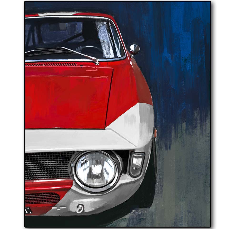 Dans ma Galerie tableaux Alfa Romeo, chaque création capture l’essence du “Cuore Sportivo”, cette âme sportive qui anime les modèles emblématiques de la marque. Des Giulia GTAm aux Spider des années 60, en passant par la mythique Alfa 33 Stradale, mes œuvres traduisent la sensualité des courbes, la force des lignes et la lumière vibrante des carrosseries rouges italiennes.