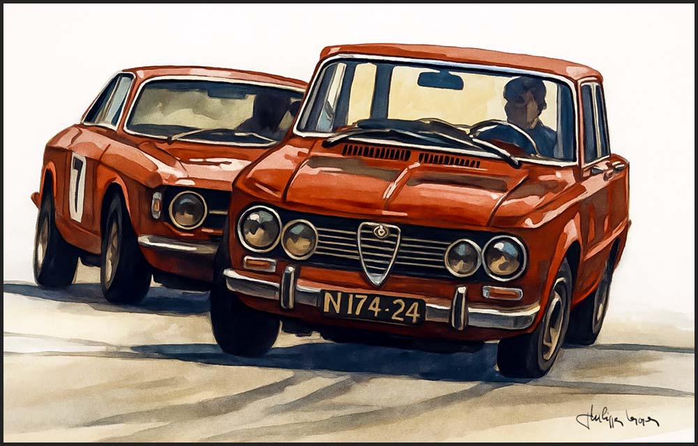 Bienvenue dans ma Galerie tableaux Alfa Romeo, un univers dédié à la passion, au design et à la performance de la légendaire marque italienne. À travers mes illustrations digitales, mes lavis d’encre et mes peintures inspirées de l’aquarelle et de l’huile, je rends hommage à plus d’un siècle d’histoire automobile, où la beauté mécanique rencontre l’émotion artistique.