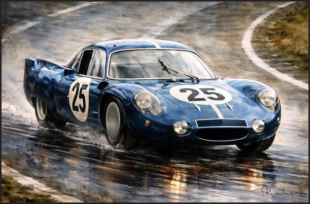 Je cherche à traduire la tension et la grâce de ces voitures emblématiques, tout en préservant une esthétique brute, énergique et expressive inspirée du lavis traditionnel.