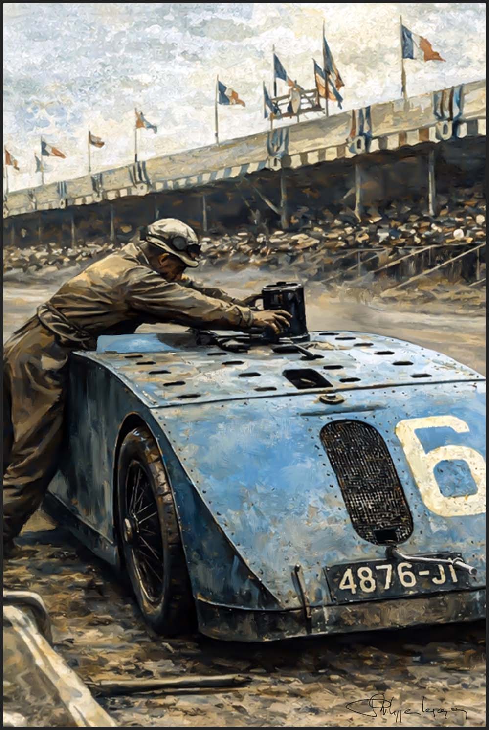 tableau Bugatti – peinture voiture Bugatti – art automobile français – illustration voiture de prestige – galerie art automobile – lavis Bugatti – digigraphie art mécanique – peinture voiture de collection.