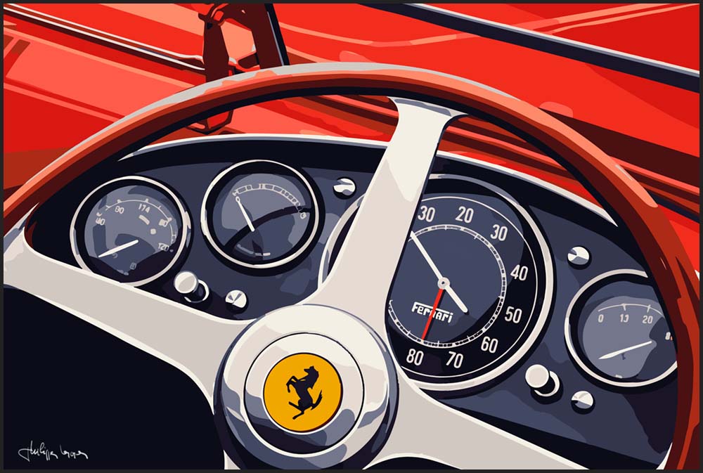 tableau Ferrari – peinture voiture Ferrari – art automobile italien – illustration voiture de sport – galerie art automobile – lavis Ferrari – digigraphie art mécanique – peinture voiture de collection.