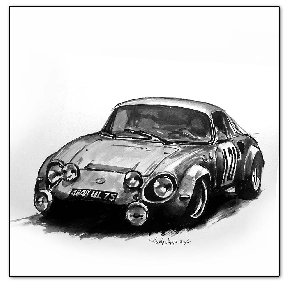 tableau Matra – peinture voiture Matra – art automobile français – illustration voiture de course – galerie art automobile – lavis Matra – digigraphie art mécanique – peinture 24 Heures du Mans.