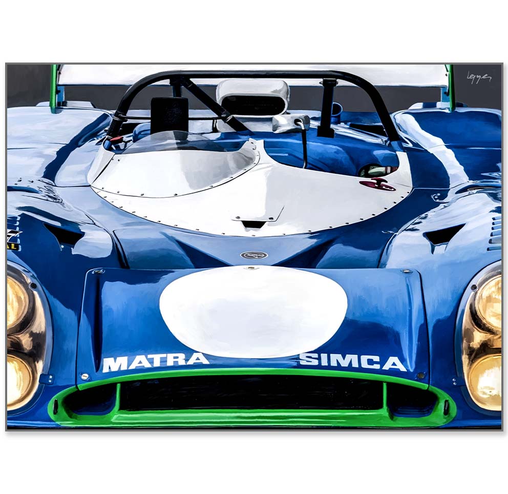Chaque tableau Matra évoque la tension d’un départ, la beauté d’un virage maîtrisé, ou encore la victoire légendaire de Matra aux 24 Heures du Mans.