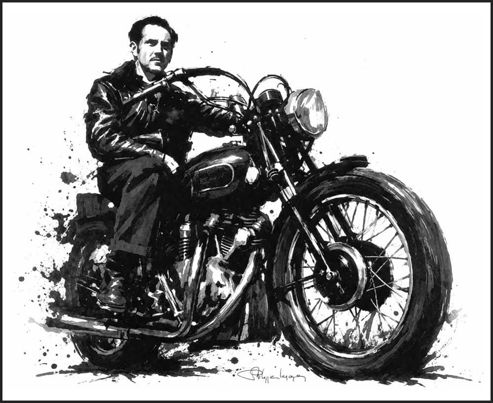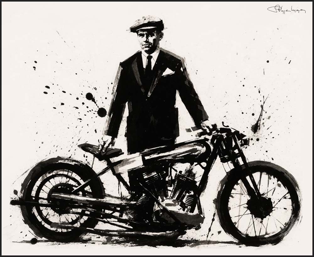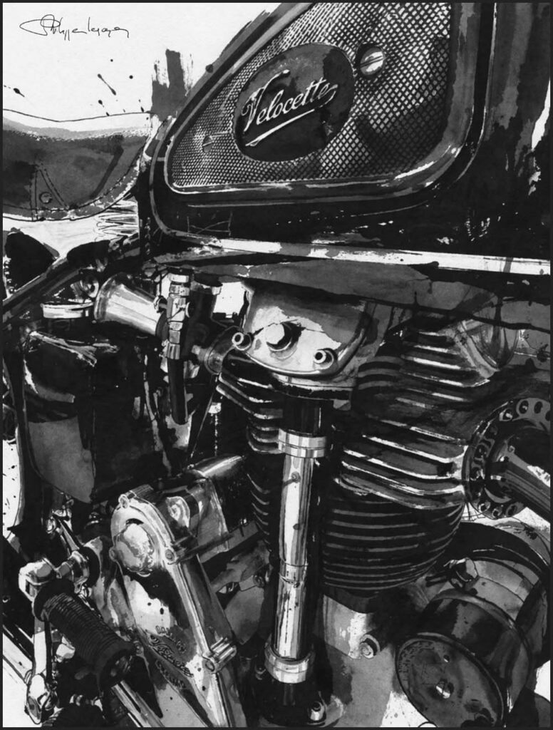 Chaque œuvre présentée dans cette galerie de tableaux de motos est réalisée au lavis d’encre de Chine sur papier aquarelle 300 g, au format 50 x 65 cm.