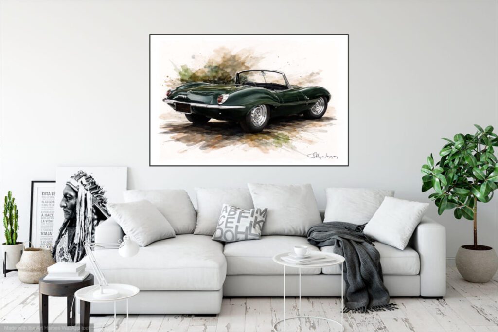 Dans l’univers du Jaguar XKSS – tableau art print, cette association renforce la dimension émotionnelle : ce n’est pas seulement une voiture, mais un symbole de liberté, de style et de rébellion.