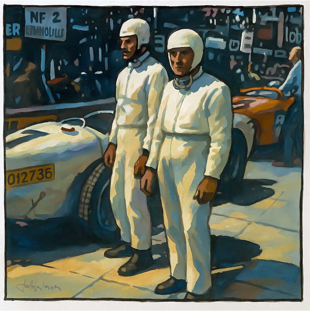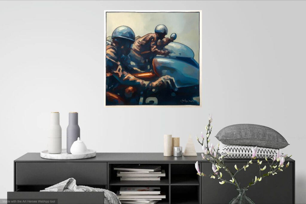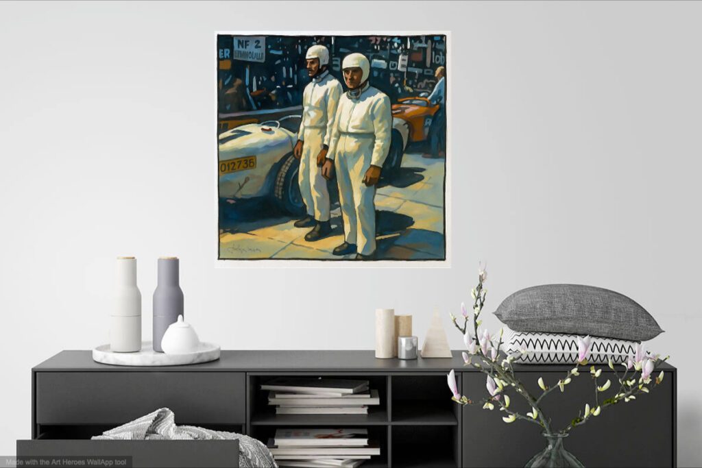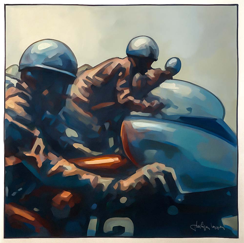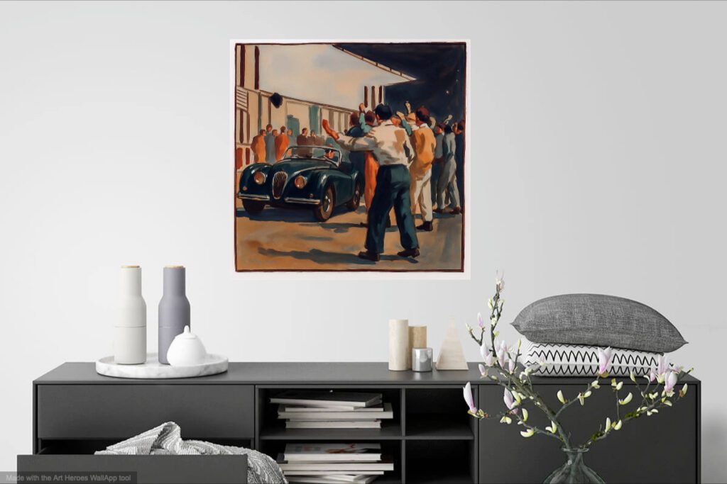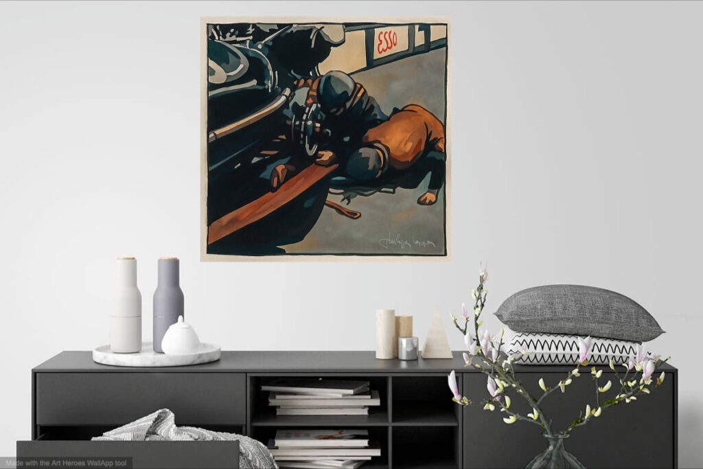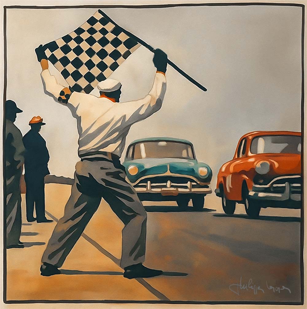 Mise en couleur de ma série “Les carrés de la course”, colorisation avec palette graphique de mes lavis d’encre de Chine à l’origine 20 x 20 cm agrandis au format carré 50 x 50 cm environ suivant visuel.