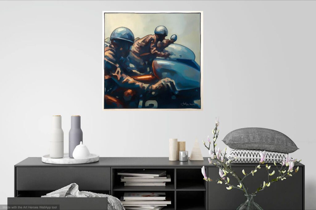 Mise en couleur de ma série “Les carrés de la course” à l’origine réalisée en lavis d’encre de Chine palette réduite à 4 grades, colorisation avec palette graphique à l’origine 20 x 20 cm agrandie au format carré 50 x 50 cm environ suivant visuel.