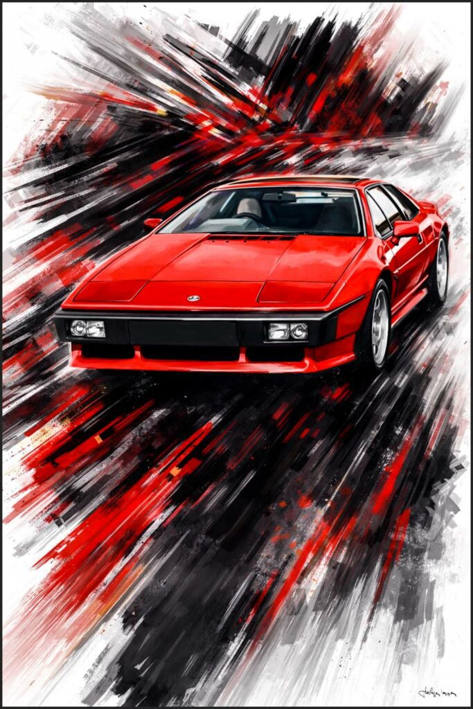 Lotus Esprit illustration mixte dessin/palette graphique 60 x 90 cm
