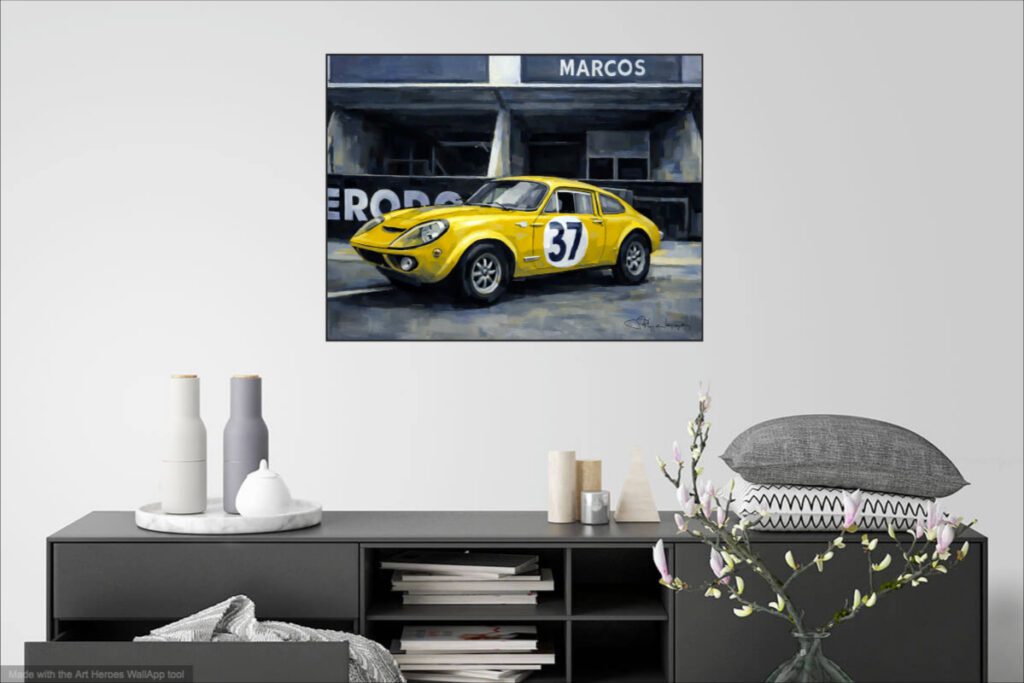 Dans les années 1960, Marcos commence à produire des voitures de sport destinées à la route, tout en conservant une forte influence de la compétition. L’un des modèles les plus marquants est la Marcos GT, un coupé sportif au design très bas et très profilé. Ces voitures deviennent rapidement populaires auprès des amateurs de sport automobile, notamment grâce à leur excellent rapport poids-puissance.