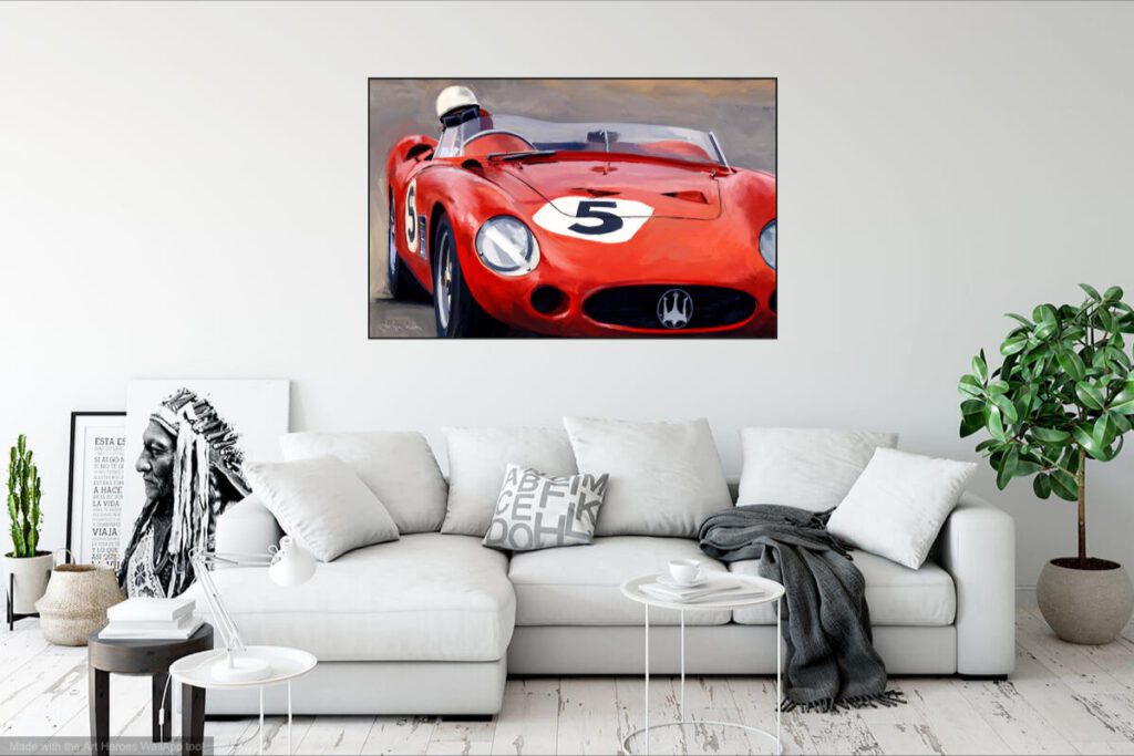 Maserati 300 S illustration technique mixte 70 x 100