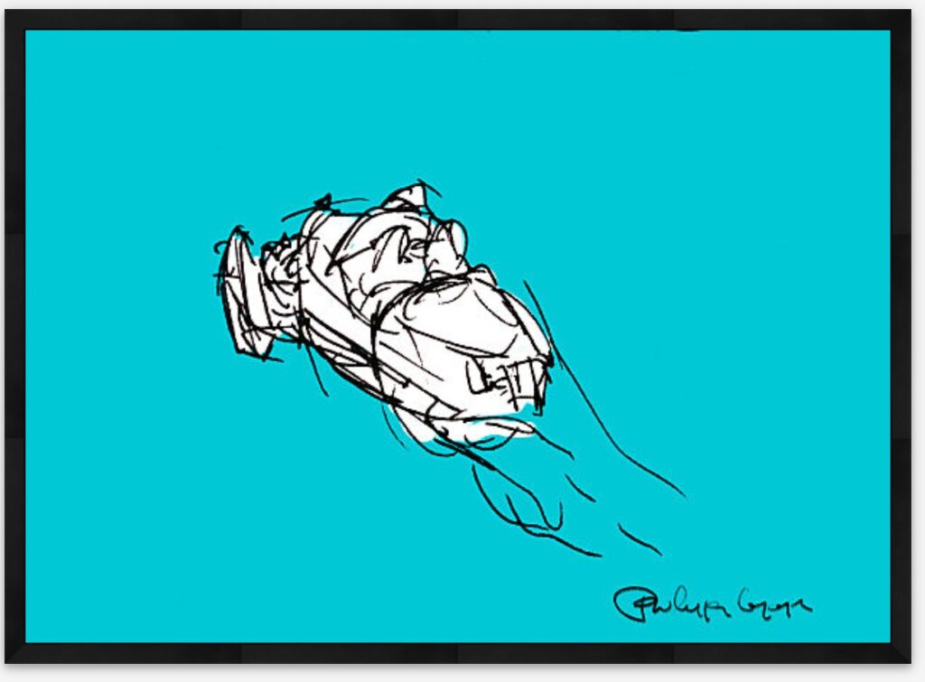 Cette illustration de Morgan 3-Wheeler Aero a été réalisée avec une palette graphique . Cette voiture mythique me sert souvent de modèle pour mes aquarelles.