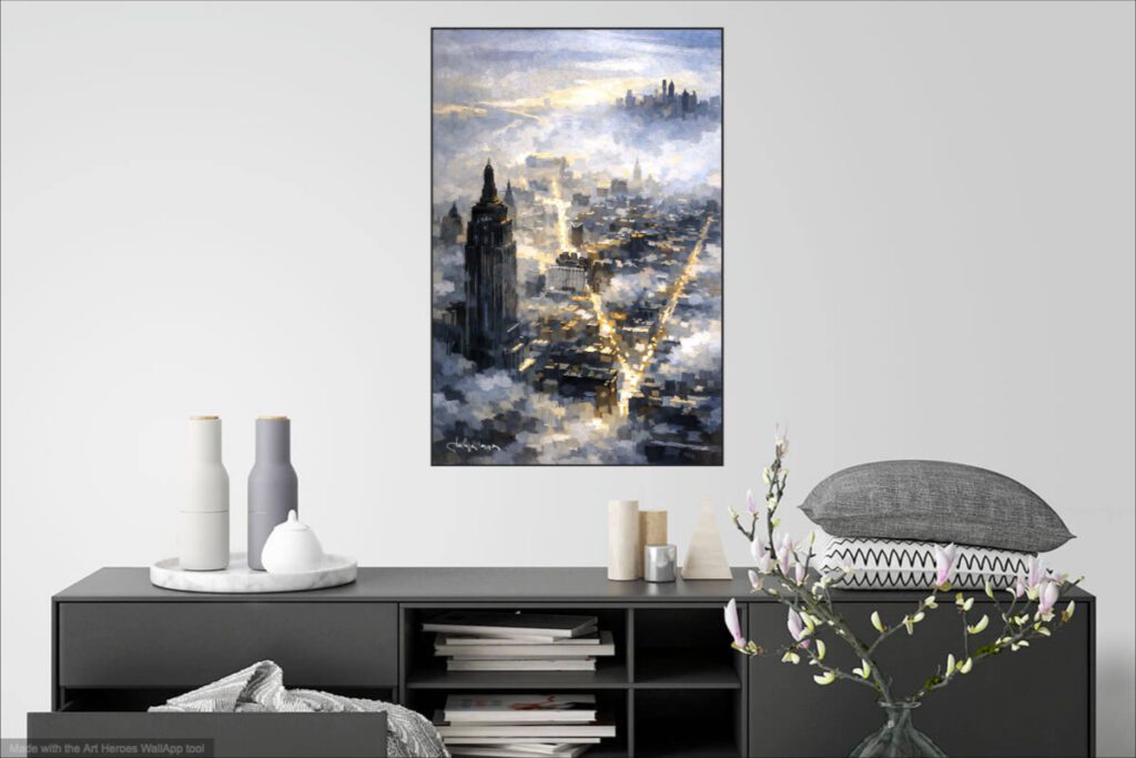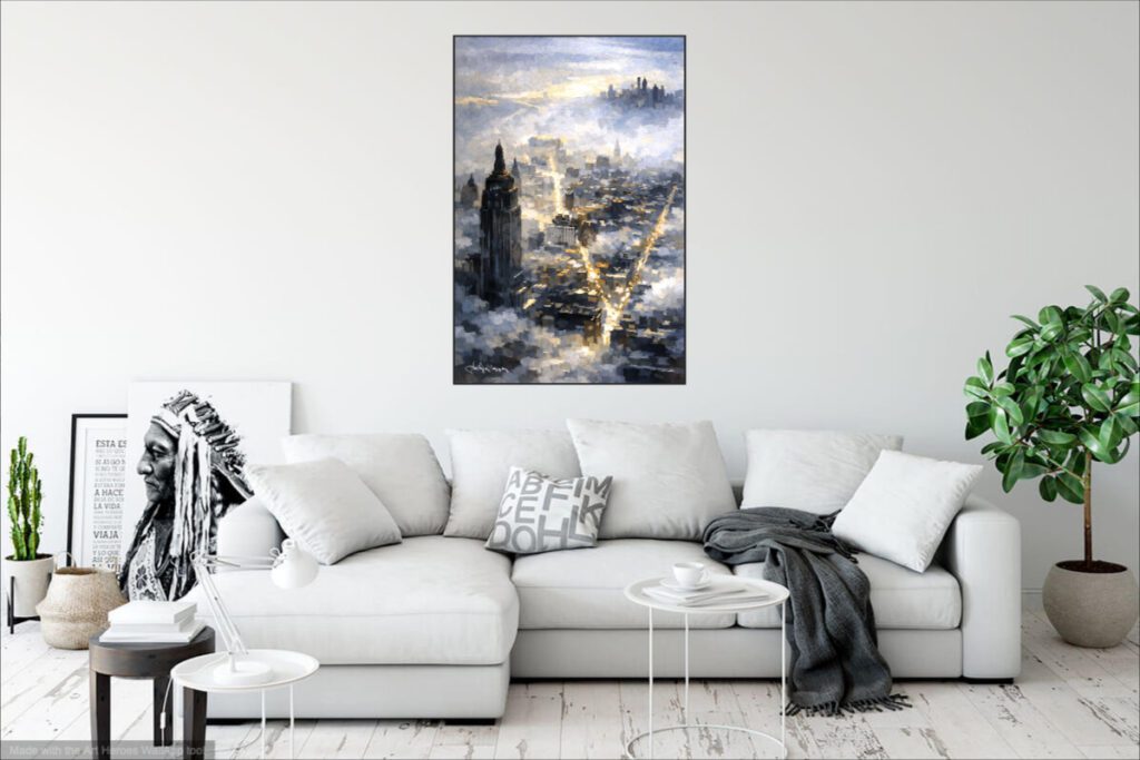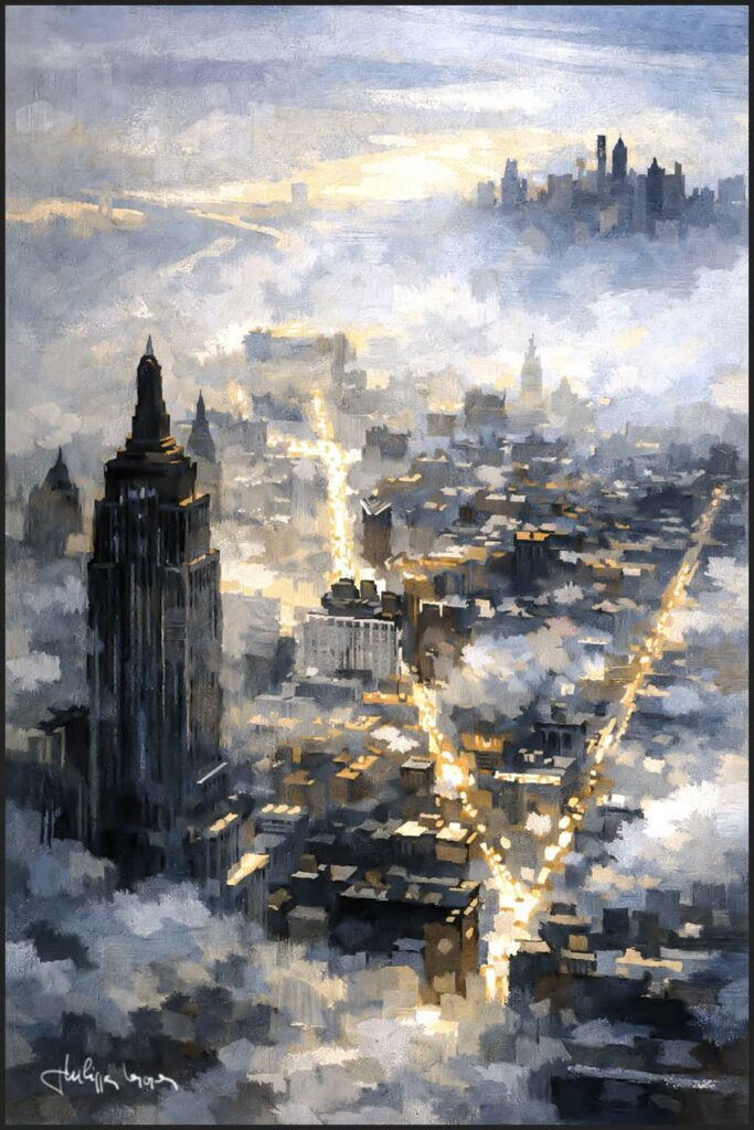 New York dans la brume vue d’avion dans les années 30 – tableau art print