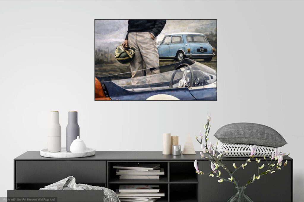 Morris Cooper S illustration mixte dessin/palette graphique 60 x 90 cm