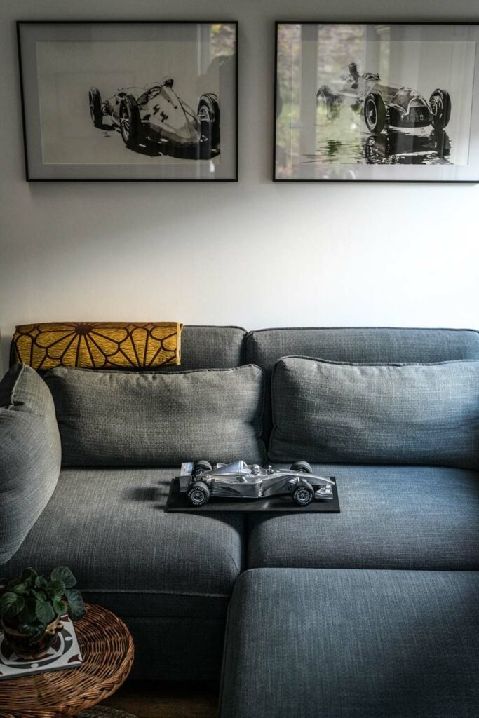 La voiture est fixée sur un socle noir épuré de 8 mm, conçu pour être suspendue à la verticale ou à l’horizontale, selon l’effet souhaité. Le système d’accrochage et les tampons protecteurs fournis garantissent une installation stable et sécurisée, tout en protégeant la surface du mur.