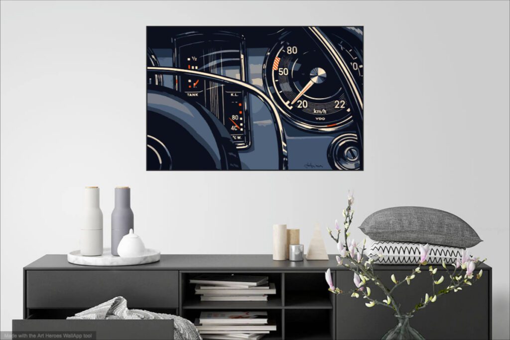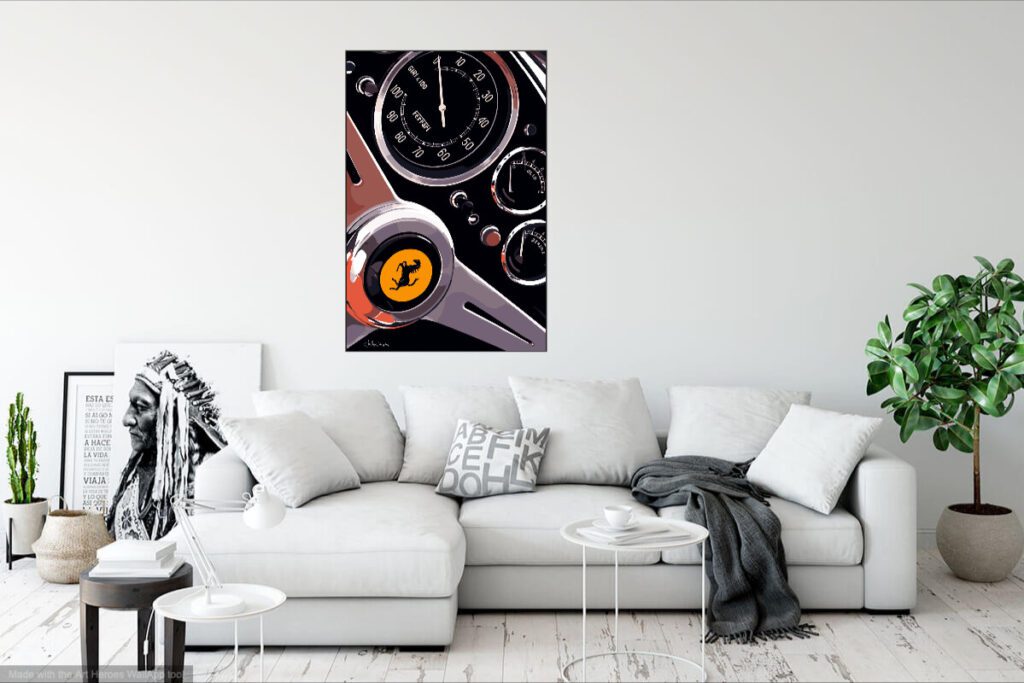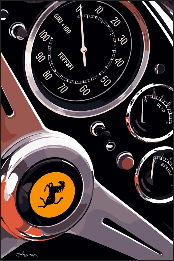 Ma série Tableaux de bord des automobiles sportives est née d’une fascination profonde pour l’univers graphique de la conduite. Plus qu’un simple hommage à l’automobile, elle explore le tableau de bord comme un territoire visuel à part entière, un espace où se croisent ingénierie, identité de marque et émotion pure. Chaque cadran, chaque aiguille, chaque typographie raconte une histoire, une vision du mouvement et de la performance.