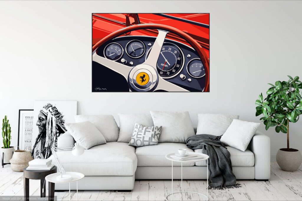 Réalisées en art print, ces œuvres sont pensées pour s’adapter à tous les formats et tous les supports. Du tirage grand format qui s’impose comme une pièce maîtresse, à des formats plus intimistes, chaque tableau conserve sa force d’impact. Leur graphisme affirmé leur permet de dialoguer aussi bien avec des intérieurs contemporains que des espaces dédiés à l’automobile, au design ou à la culture visuelle.