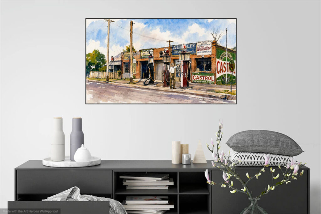 Station service dans les années 20 – aquarelle art print tableau