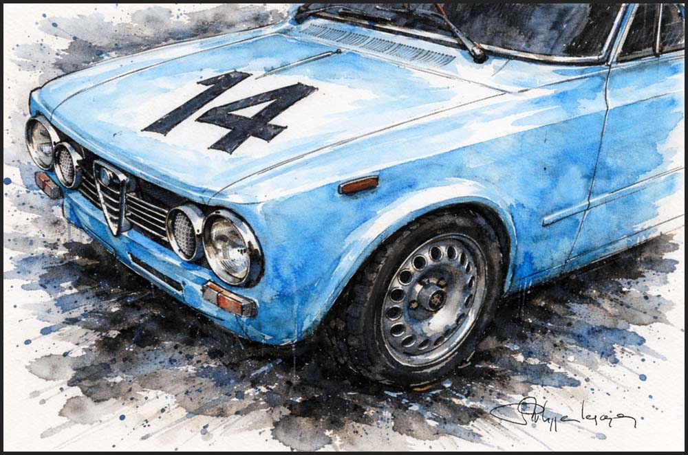 Bienvenue dans ma Galerie tableau Alfa Romeo, un univers dédié à la passion, au design et à la performance de la légendaire marque italienne. À travers mes illustrations digitales, mes lavis d’encre et mes peintures inspirées de l’aquarelle et de l’huile, je rends hommage à plus d’un siècle d’histoire automobile, où la beauté mécanique rencontre l’émotion artistique.