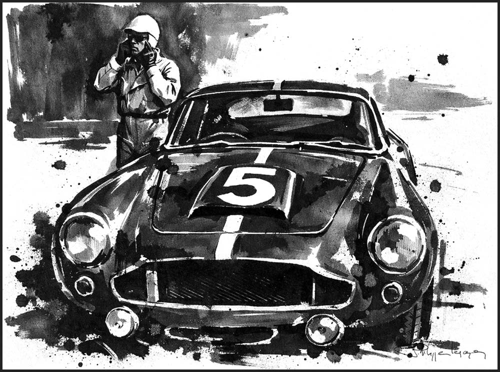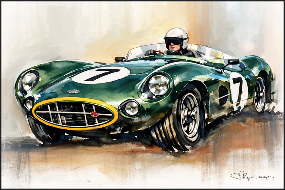 tableau Aston Martin – peinture voiture Aston Martin – art automobile britannique – illustration voiture de luxe – galerie art automobile – lavis Aston Martin – digigraphie art mécanique – peinture voiture de prestige.