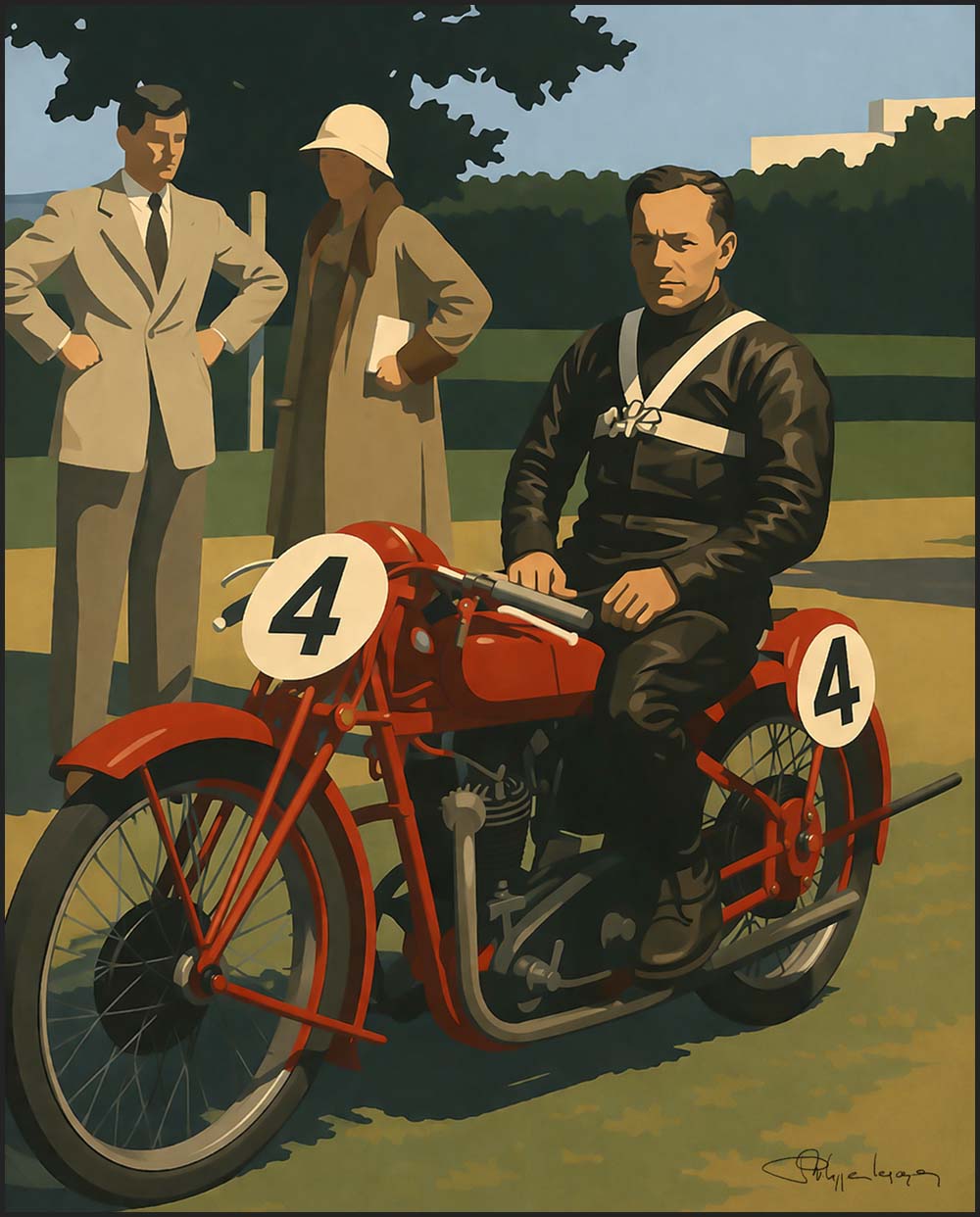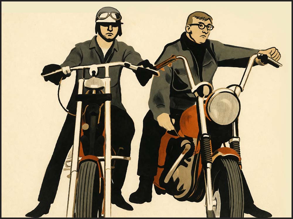 Chaque tableau restitue l’énergie brute, la tension mécanique et la complicité unique entre pilote et passager. Le style graphique, volontairement expressif et dynamique, joue avec la lumière, les textures métalliques et les contrastes pour évoquer le mouvement et la puissance.